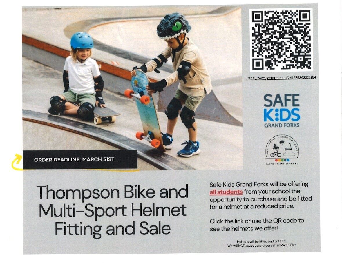 Safe Kids of Grand Forks will be at our school on Wednesday, April 2nd to deliver helmets & get them properly fitted.